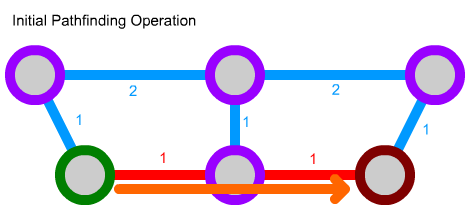 However, the idea of repeating calculations that have already been done feels inefficient. Sure, a simple addition doesn't take much extra time, but multiply that across thousands of pathfinding operations on systems consisting of hundreds of nodes with several connections each, and the amount of extra time starts to add up. This is particularly problematic when handling large amounts of pathfinding NPCs, or when pre-calculating ("baking") paths, where paths between potentially millions of node pairs are all calculated in one go.